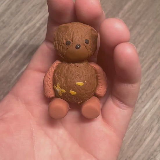 My favorite pieces to make are teddy bears! I love dressing them up in all kinds of ways. This little guy has flower petals flowing in the wind across his tummy, adding a touch of whimsy. I especially enjoy creating flowers with petals falling off—they symbolize change, growth, and the beauty of life’s transitions. Teddy bears are often seen as loyal little friends, and making them is therapeutic for me, letting me pour love and care into every detail. He loves to sit back after his tummy is full of honey and sweets, quietly watching the sunset, savoring the simple joys of the day.